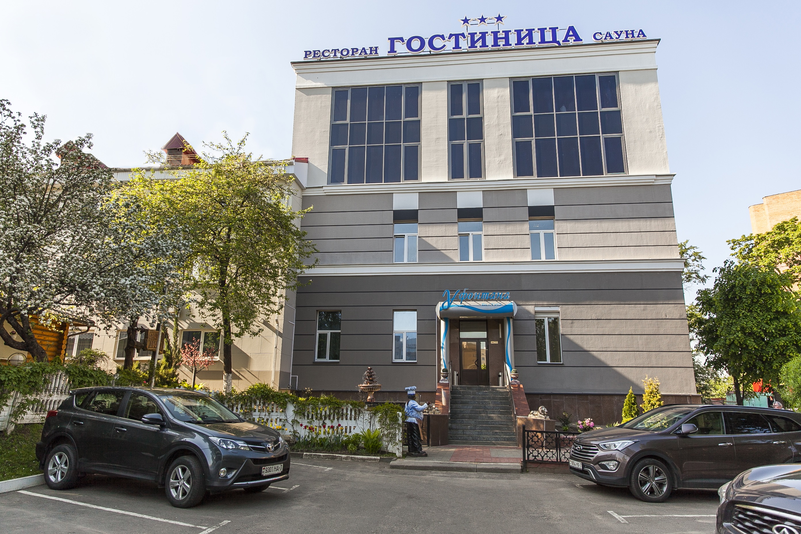- При ресторане работает гостиница «У фонтана» ***, которая готова предложить со скидкой проживание в номерах категорий «Стандарт», «Улучшенный» и «Люкс».